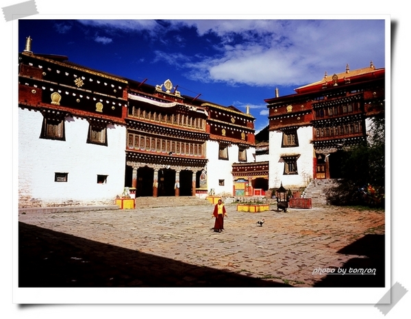 貢嘎朗吉嶺寺建築宏偉,存有五世達賴所贍“彌勒銅像”一尊,為罕見文物;雄登寺建于明初,藏有十萬頌經書,供奉大小佛像數百尊,其中有九世班禪檀香木釋迦牟尼佛像。 這座寺廟映像深刻,因為這一趟下來也沒有這麼好天氣過,所以拍了不少.加上自己對於風景本來就不太行, 還有喜歡有人的部分.